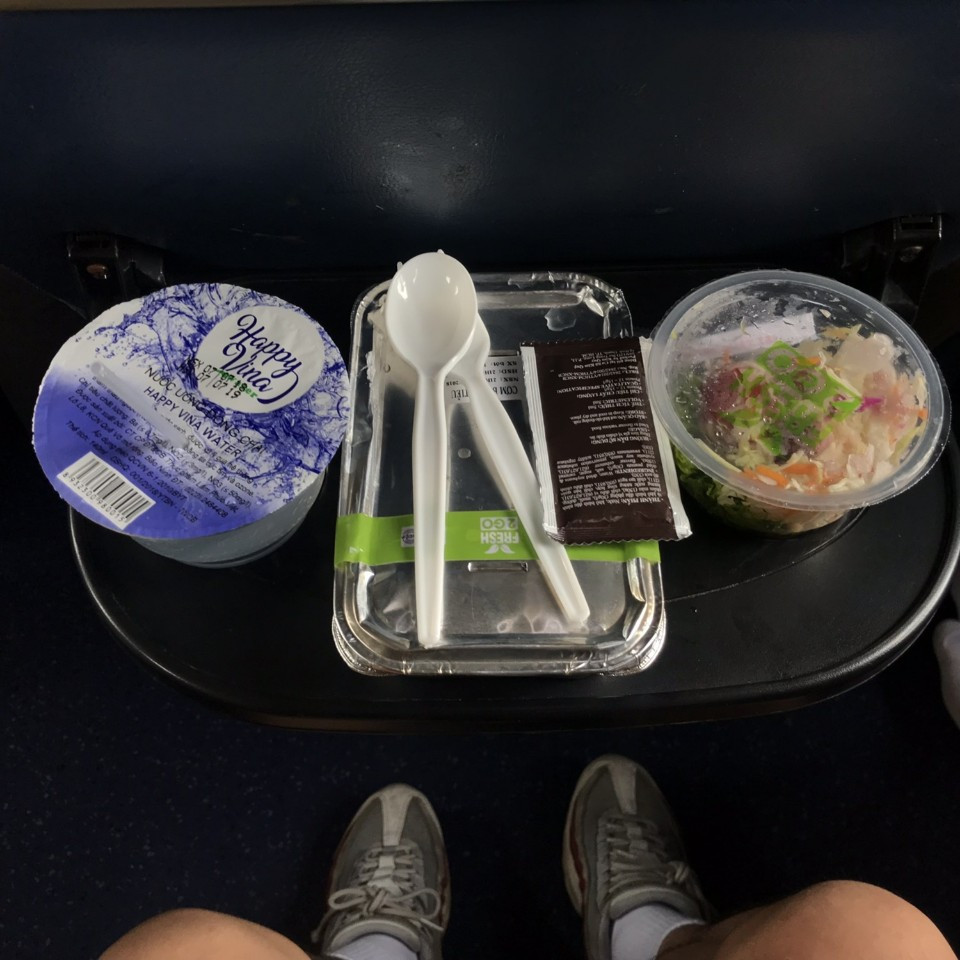 동허이 기차역. 오른쪽에 보이는 음식은 기차에서 제공된는 물과 음식들이다.