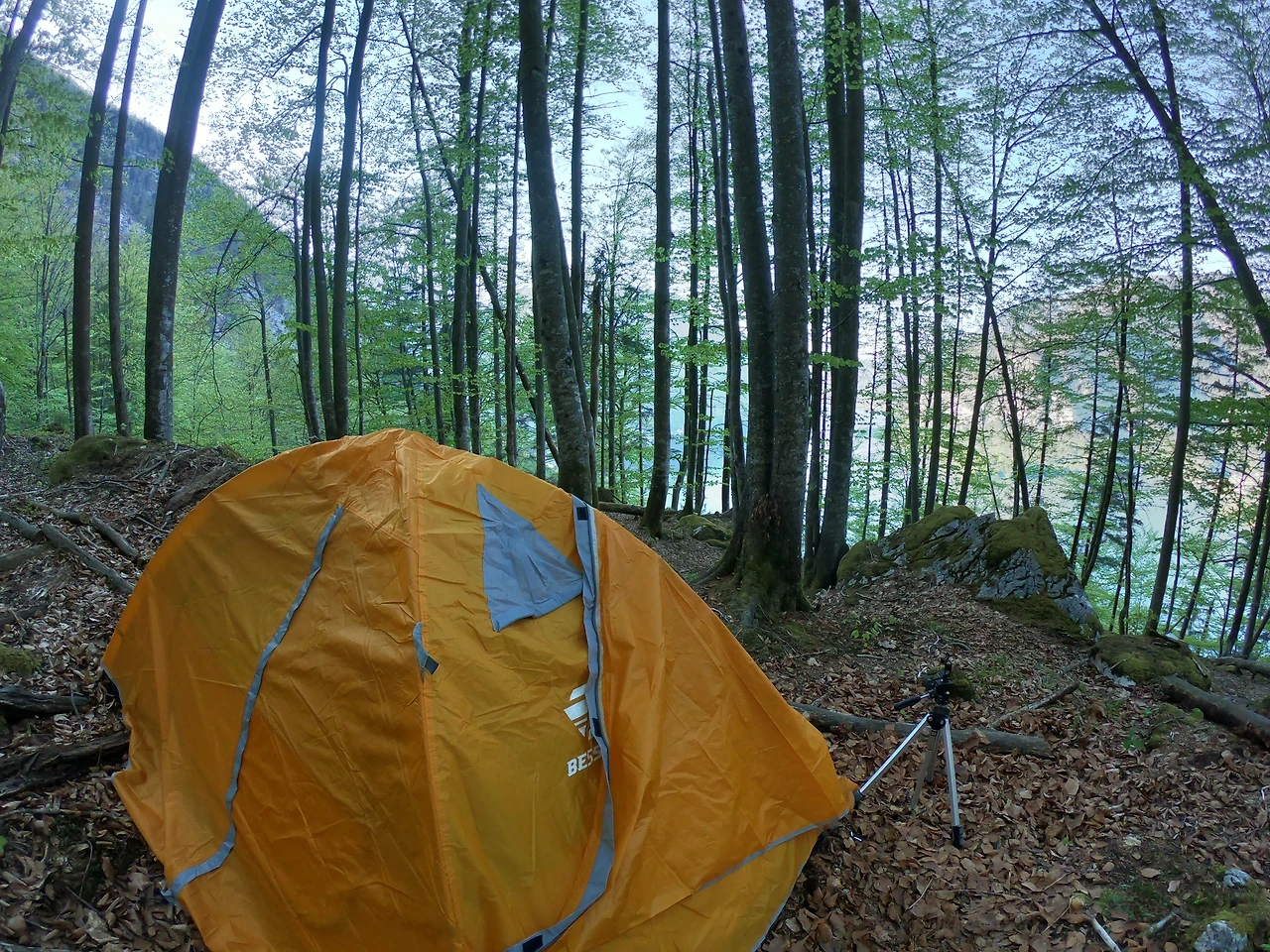 3시간 정도 산에 오르다 보니, 더 이상 올라가도 하루 묵을만한 평지를 찾기 힘들 것 같아 그나마 평평한 곳에 텐트를 쳤다. 바닥이 폭신해 등 배길 걱정은 없을 듯.