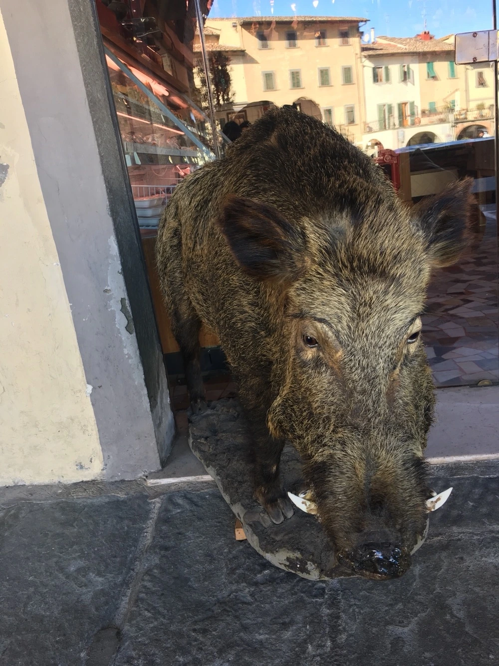 광장으로부터 뻗어진 골목길들을 둘러보니 멧돼지의 박제품들이 거리 곳곳마다 서있다. 예로부터 산간지방에서는 먹을거리가 부족해 주로 사냥한 멧돼지들을 가공하거나 요리해 먹었다고 한다. 그래서인지 가게에 들어서면 천장에 약간은 그로데스크 한, 털이 수북이 난 멧돼지의 앞다리들이 염장-건조된 상태로 보관되고 있었다. 현지인들의 말에 의하면 다리를 잘라낸 면만 염장을 하고 털과 가죽은 그대로 건조하는 것이 그레베의 전통적인 방법이라고 한다.