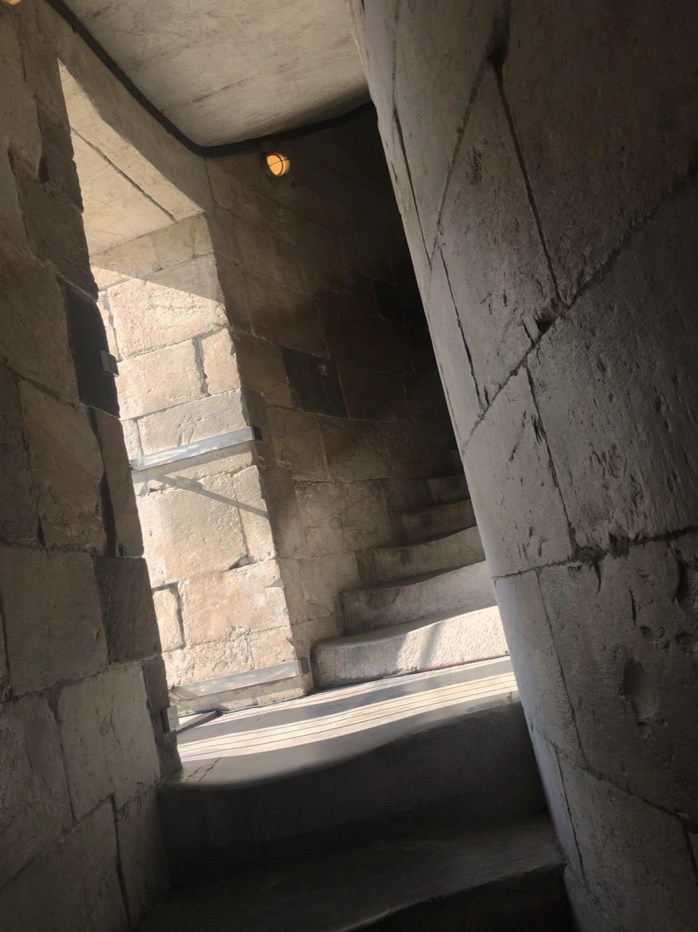 5.5도로 기울어진 탑의 첫 몇 미터는 기울기가 잘 느껴지지 않지만 오르면 오를수록 각의 중심과 멀어져 기울어진 정도가 심해 휘어짐이 격하게 느껴진다. 재미난 점은 위 사진에서 보이듯이 사람들이 기울어진 면을 따라 걸어 올라 계단의 한쪽면만 마모되어 있다는 것이다. 걸어 올라가다 보면 어릴 적(사실 요즘에도) 놀이동산에 가면 꼭 탔던, '마법사의 성'같은 어지러움을 느낄 수 있다.