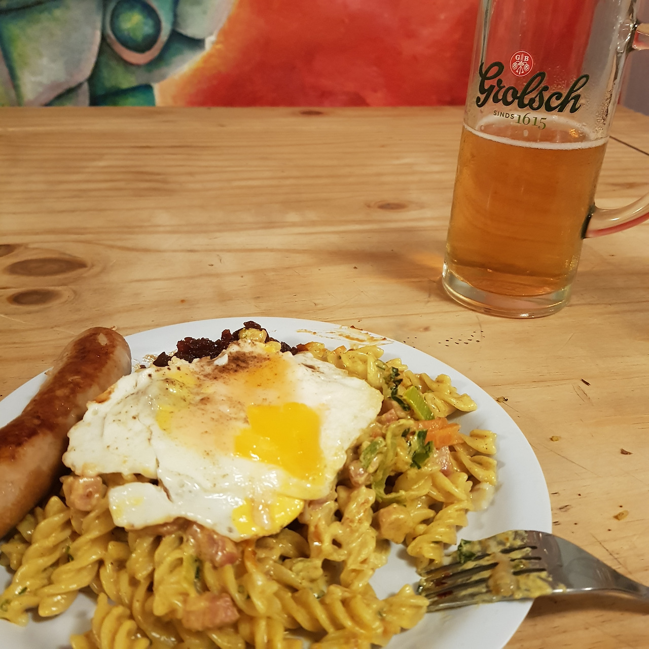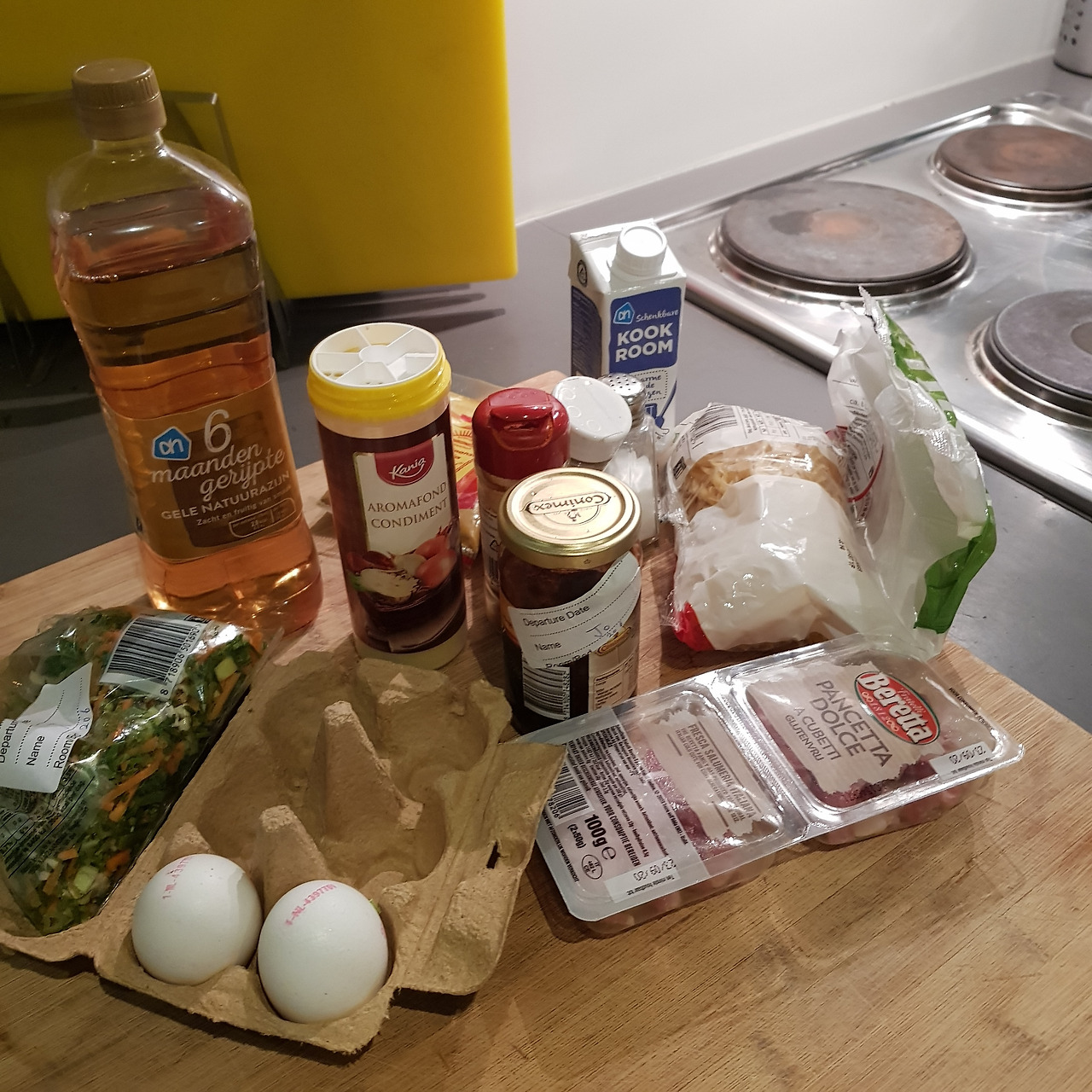 마트에서 장을 봐왔다. 신라면도 잘 못 먹는 내가 제일 좋아하는 엄청나게 매운 칠리소스 인도네시안 삼발을 우연히 발견했다. 어차피 소금이나 기름은 다 호스텔에 있을 테니까 재료만 사가자! 주방엔 채소 스톡 파우더부터 카옌페퍼, 큐민, 피시소스, 울금까지 향신료가 가득 있다. 횡재했네. 인도네시안 고추 젓갈을 곁들인 중동 냄새 크림 파스타를 옆에서 유심히 지켜보는 2m짜리 남자에게 다가갔다.