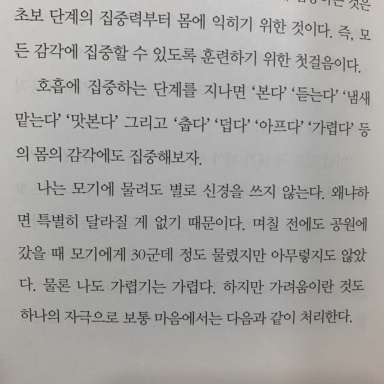 엄청난 정신력.. “나는 모기에 물려도 별로 신경을 쓰지 않는다. 왜냐하면 특별히 달라질 게 없기 때문이다.” 역시 육체를 지배하는.