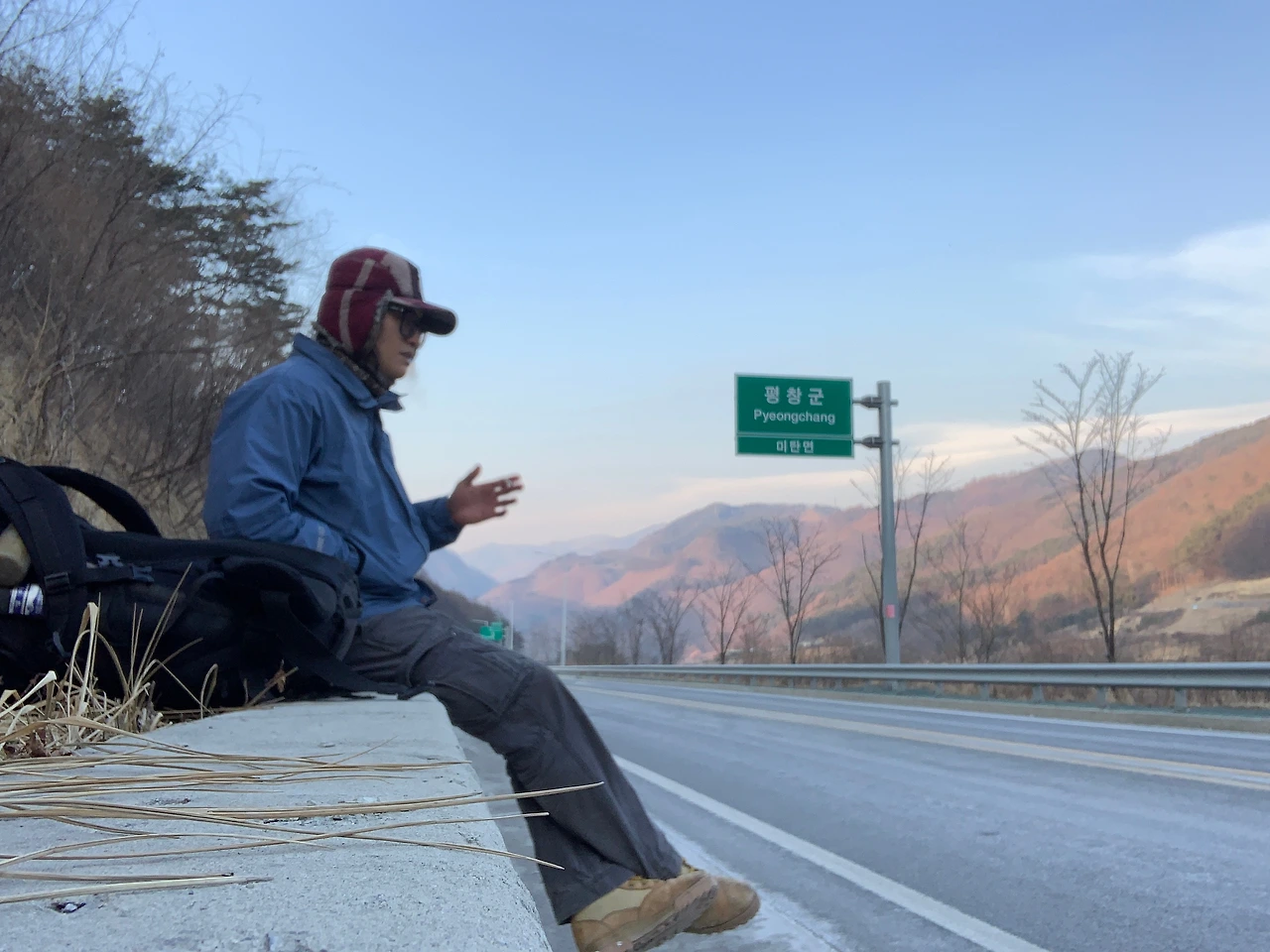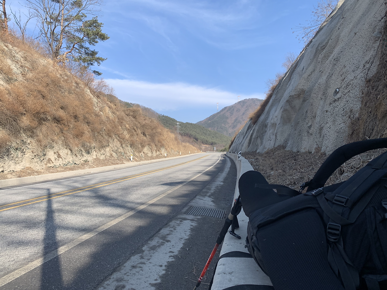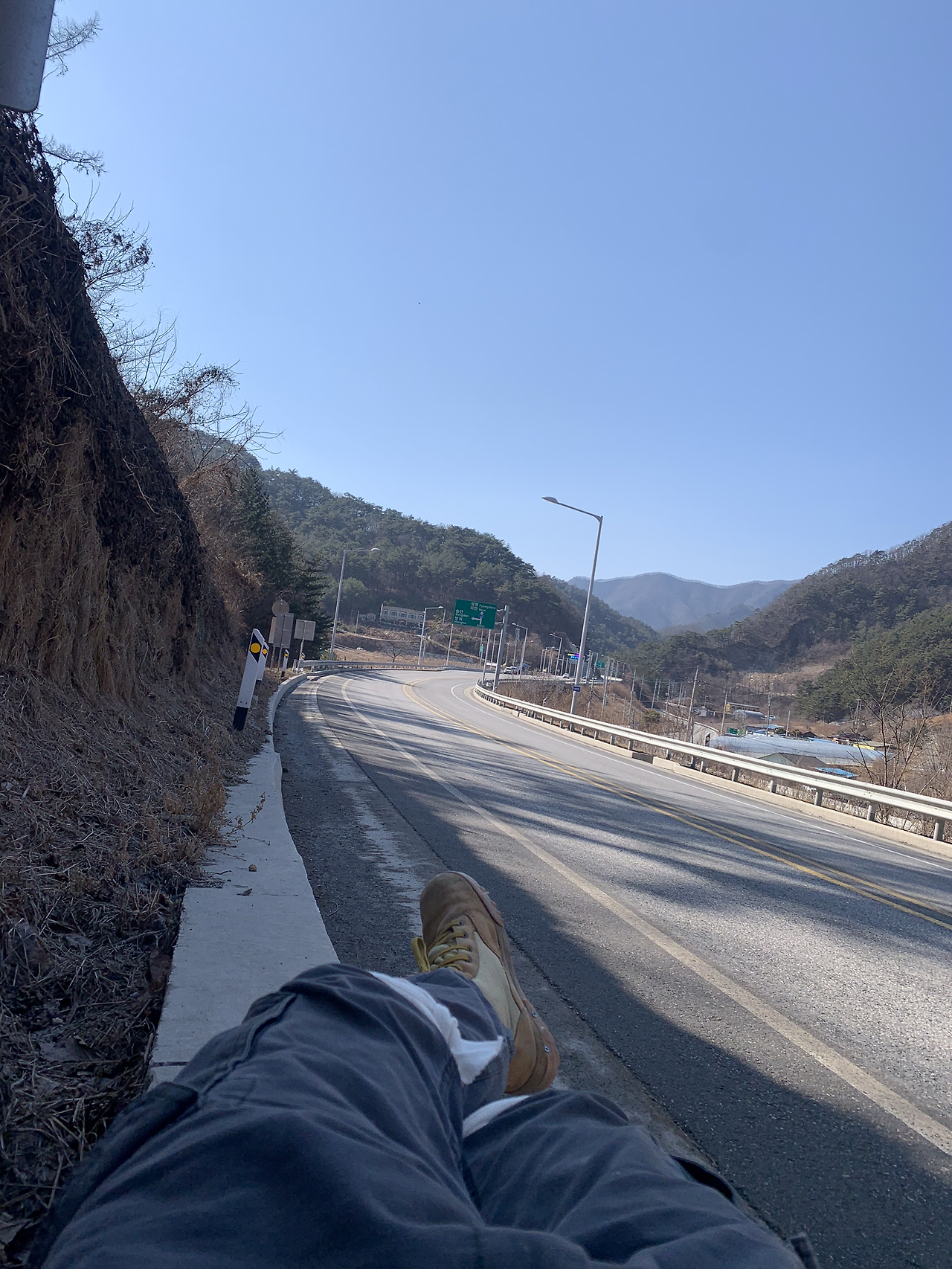 어제는 여관방에서 뜨듯한 물로 샤워도 하고 푹신한 침대에서 피로를 풀었다. 여기서부터 강원도 입구까지는 국도를 통해서 걸어가야겠다. 의천이한테 연락이 온다. “야 거기 차량 전용 도로잖아” 표지판을 보니까 이륜차, 소형 전기차, 자전거는 통행금지란다. 도보는 따로 표기되어있지 않으니 그냥 가야겠다. ㅋ