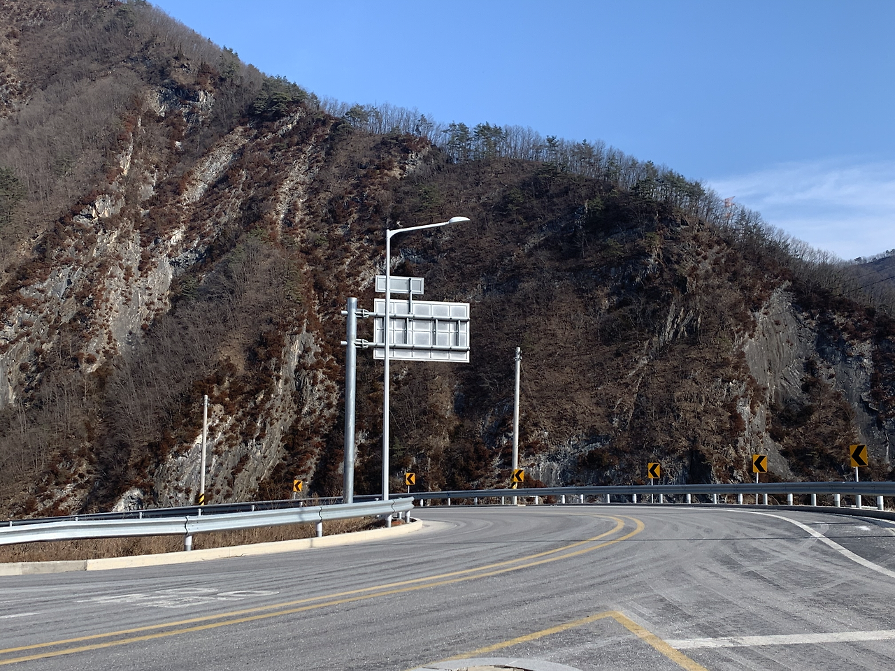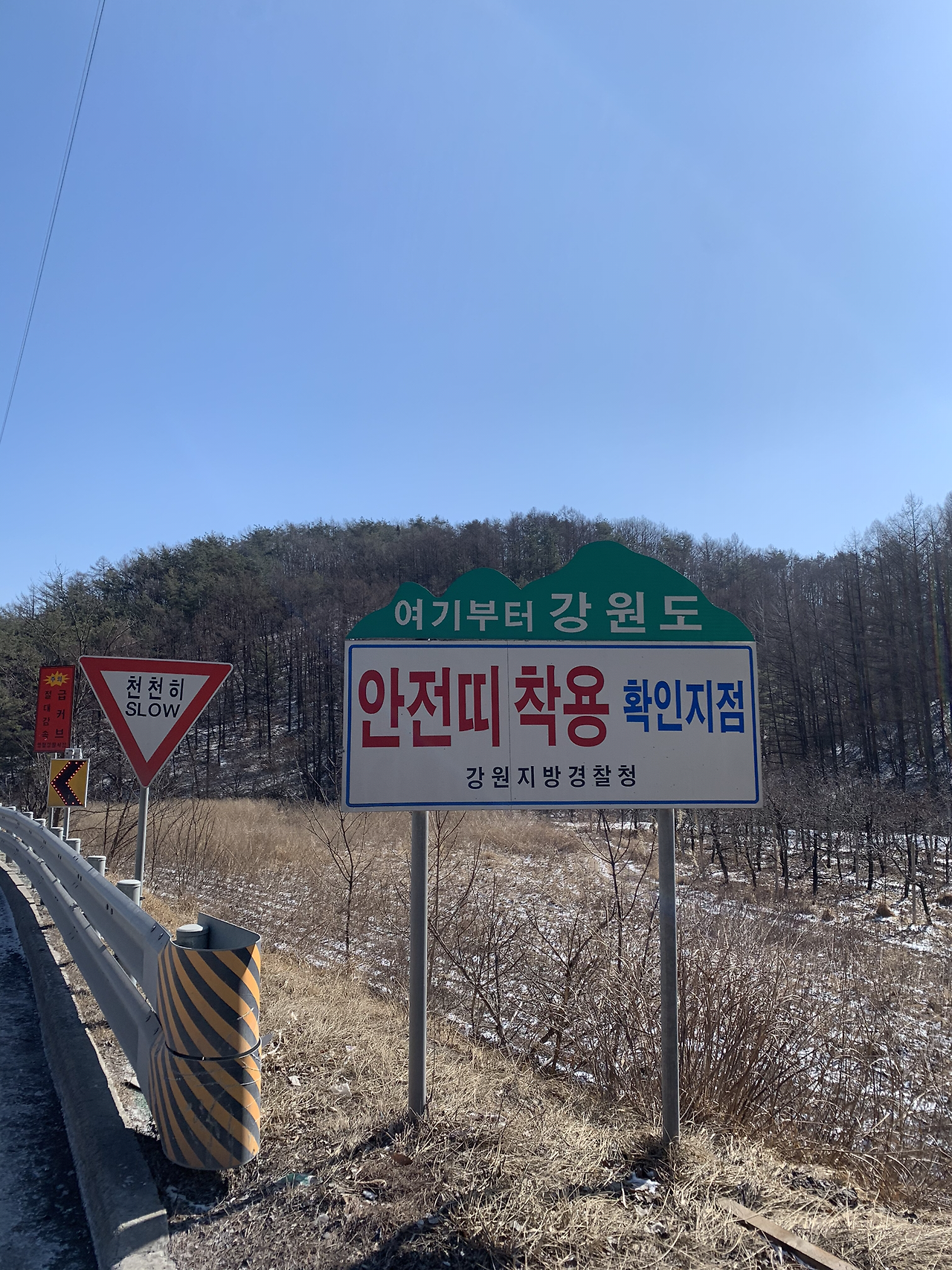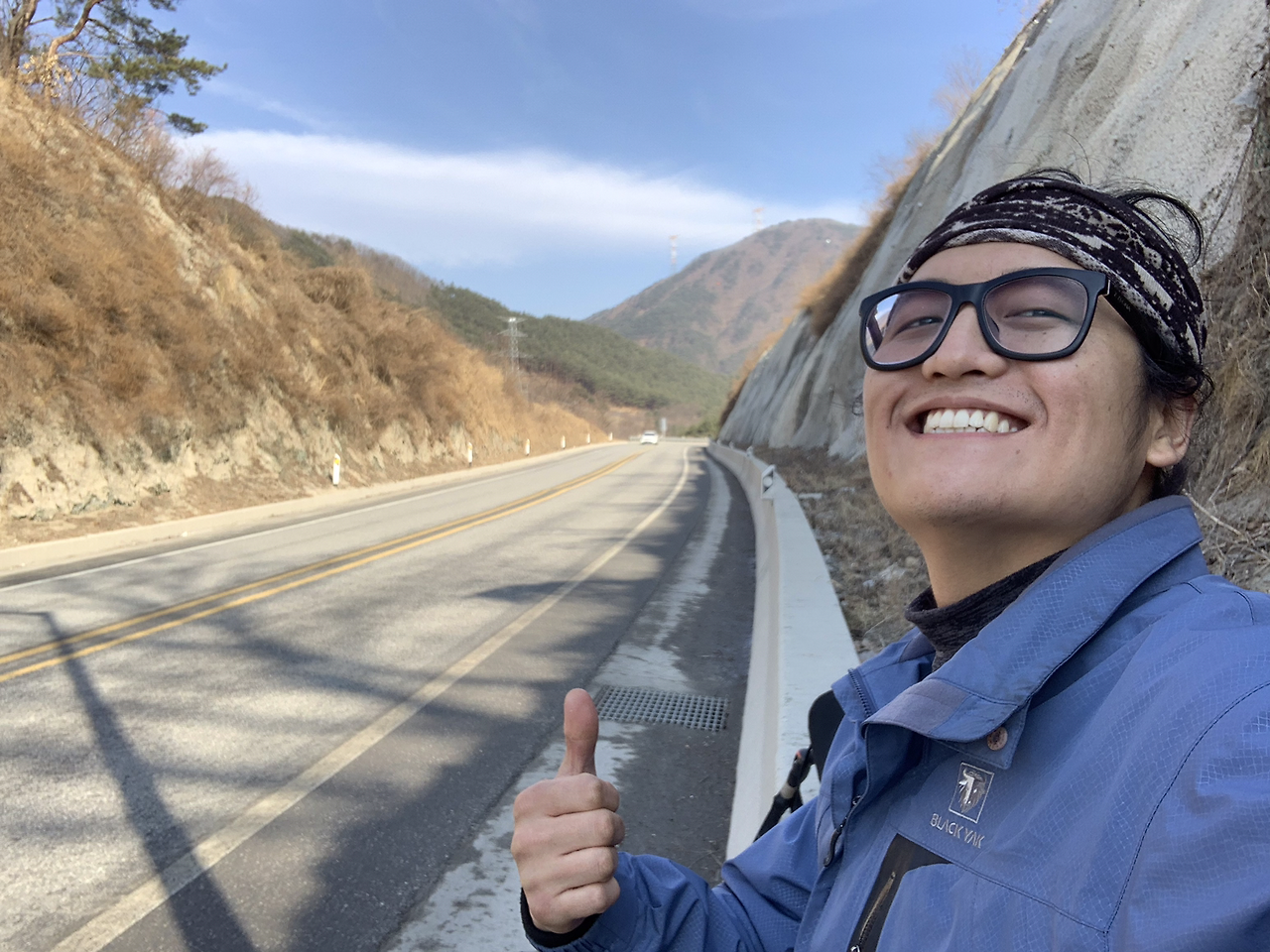 어제는 여관방에서 뜨듯한 물로 샤워도 하고 푹신한 침대에서 피로를 풀었다. 여기서부터 강원도 입구까지는 국도를 통해서 걸어가야겠다. 의천이한테 연락이 온다. “야 거기 차량 전용 도로잖아” 표지판을 보니까 이륜차, 소형 전기차, 자전거는 통행금지란다. 도보는 따로 표기되어있지 않으니 그냥 가야겠다. ㅋ