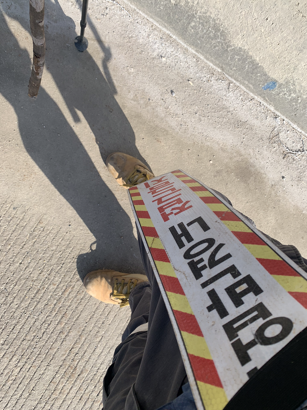 ‘작업반경내 접근금지’ 푯말을 주웠다. 가방에 잘 붙여서 메고 다니면 웃길 것 같은데 생각보다 무겁다. 터널 입구 바리케이드에 붙여놓고 왔다.