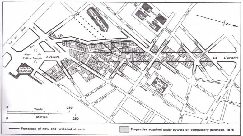 [3] David Harvey, Paris: Capital of Modernity, London, Routledge, 2003, pp. 107–116. – 그는 2장의 The Organization of Space Relations 편에서 오스만 (Haussmann) 도시 재편을 근대 자본주의 도시의 탄생과 연결하여 분석하며, 대로와 광장개설이 단순한 미화가 아니라 자본 순환, 부르주아 이익, 정치적 통제를 목표로 한 제도적 개입임을 설명하였다.