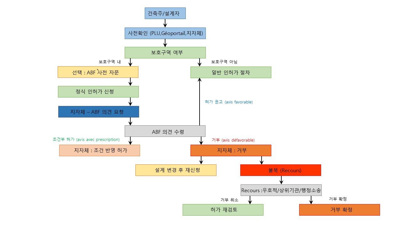 특히 문화재로 지정된 건축물 반경 500미터 이내에서 이루어지는 모든 건축 행위는 ‘프랑스 건축유산 담당 건축사(Architecte des Bâtiments de France, ABF)’의 심의를 거쳐야 한다. 이 제도는 단순한 행정 절차를 넘어, 도시 경관과 문화적 상징성에 대한 실질적 통제력을 갖는 구조다. [2] ABF는 국가가 임명하는 고위 공공건축가로, 허가 여부를 판단할 때 단지 기술적 요건만을 보지 않는다. 역사성과 장소성, 경관의 연속성 등 비가시적인 가치들을 종합적으로 고려하여 판단을 내린다.