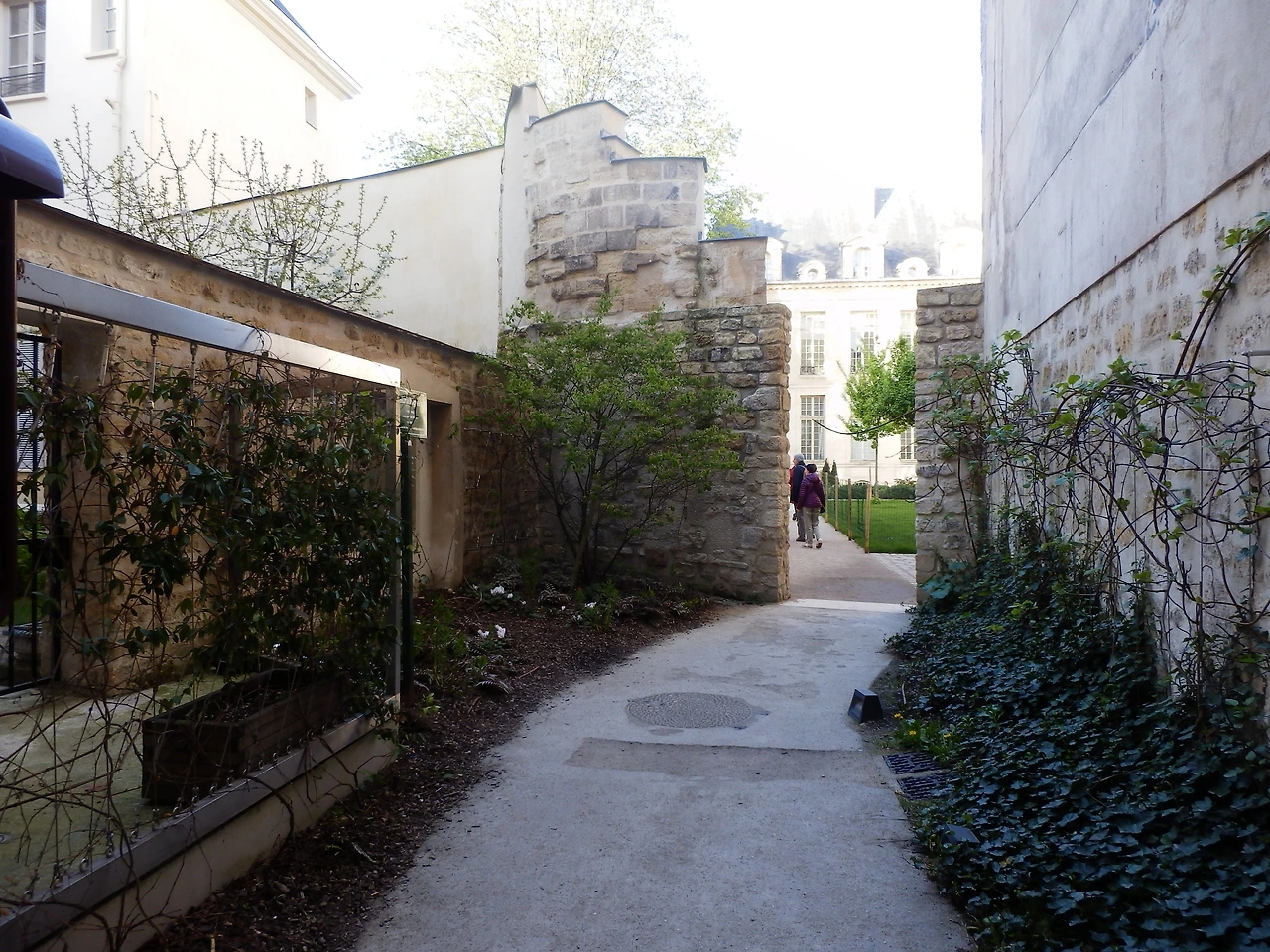 로지에 가(Rue des Risiers)를 따라 정원으로 들어서면, 중세 성벽의 잔재가 남아 있는 돌담이 먼저 눈에 들어온다. 돌담을 지나 아이들이 뛰노는 현대적으로 구성된 잔디밭으로 발걸음을 옮기면, 과거와 현재가 자연스럽게 겹쳐 있는 공간을 경험하게 된다. 마레 지구에 위치한 이곳은 Hôtel de Coulanges를 포함한 역사적 건물들과, 2007년부터 2014년까지 조성된 조제프 미그네레트 정원(Jardin des Rosiers – Joseph Migneret)이 함께 어우러진 예다. 성곽 탑과 돌담 등 역사적 구조물을 그대로 유지하면서 산책로, 잔디밭, 어린이 놀이터와 다양한 식재가 결합되어, 도시 속 과거와 현재의 조화를 생생하게 보여준다. 이러한 공간은 이후 논의할 프랑스 건축유산 보호 정책과 제도적 맥락을 이해하는 배경이 된다.