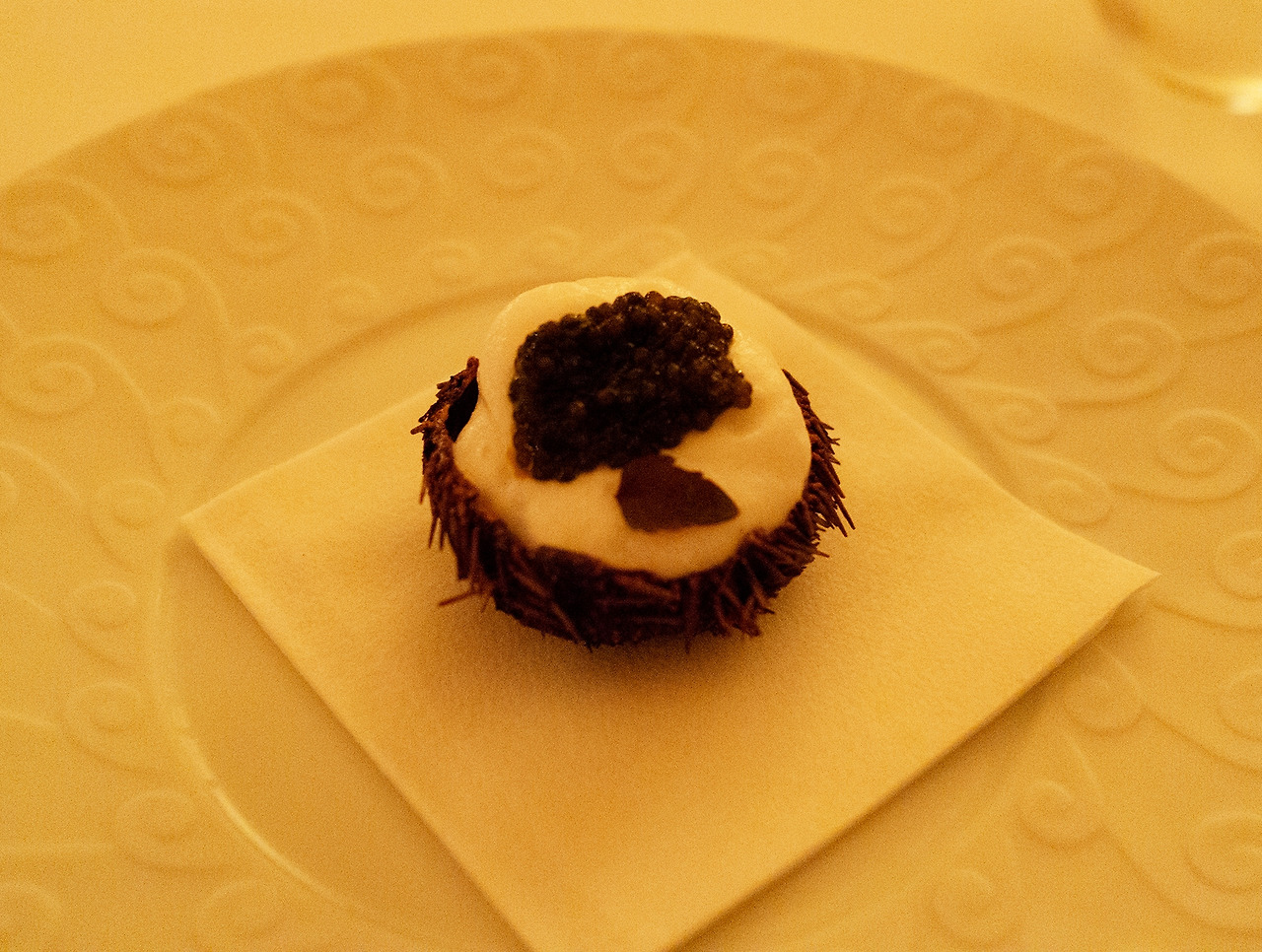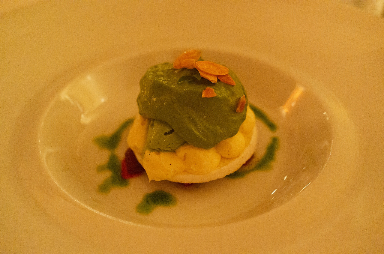 성게알이 베이스에 깔려있고, 무스 위에 캐비어가 올라가 있었는데 비리지 않고 상큼했다.