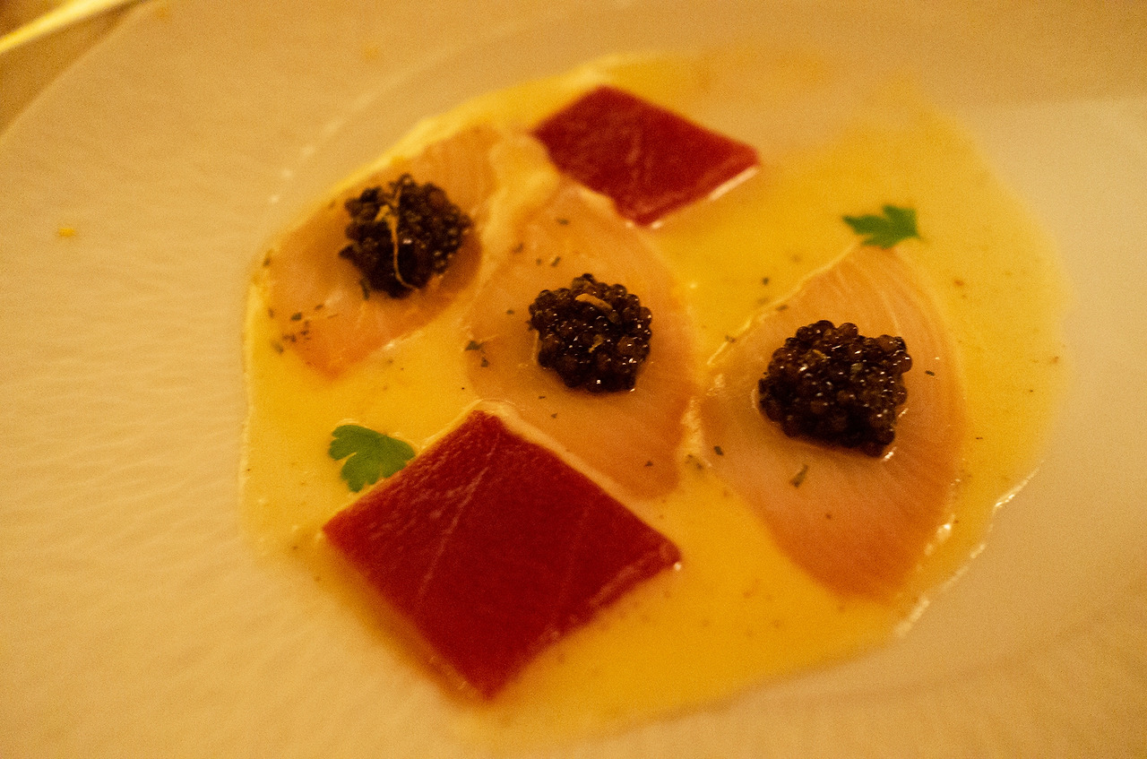 아내가 주문한 메뉴였는데, 한 점 얻어먹어보니 캐비어가 올라앉은 부시리는 놀라울 정도로 부드럽고 고소했다.