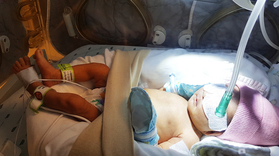 "어젯밤에 무호흡이 한번 체크되어서 아침에 혈액검사를 시행했는데, 다행히 큰 이상은 없었어. 다만 황달수치가 14로 좀 올라가 있어서 광선치료를 다시 시작했고, 조금이라도 더 안전하게 가기 위해서 저농도 산소를 투여한 거니 너무 걱정할 필요는 없어."