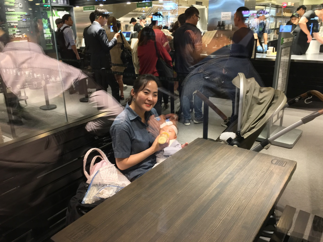 우리가 거기서 한 일이라곤 선물로 들어온 아기 옷을 다른 사이즈로 교환하고, (출국 계획도 없는 주제에) 갓 오픈한 신세계 면세점을 둘러본 다음, 영유아 동반 가능한 라운지에서 채연이 분유 먹인 게 전부였다.