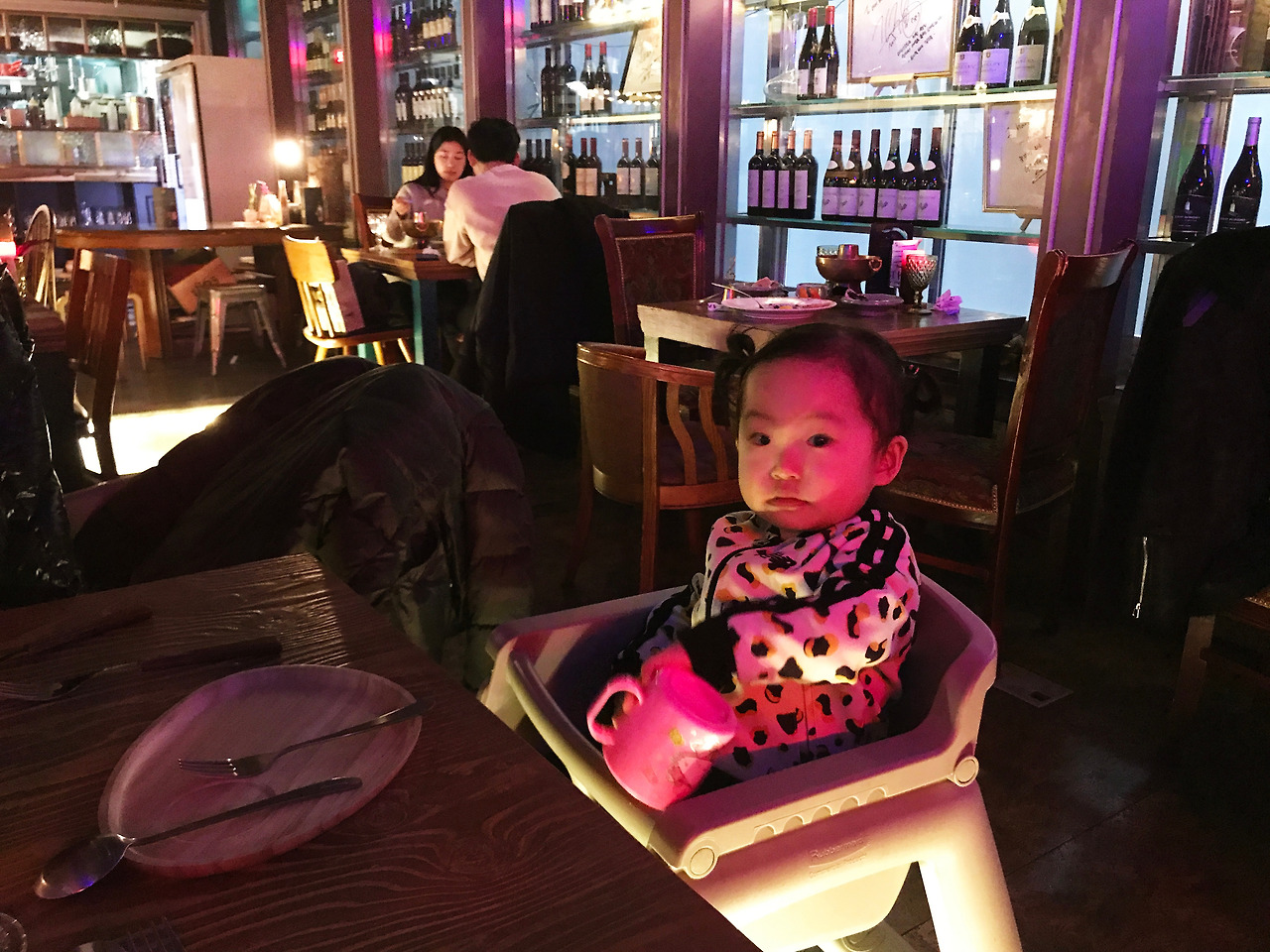 채연이가 탑승 중인 유모차를 두 명의 훤칠한 웨이터가 마주 잡고는, 레스토랑 입구에 있는 계단 위로 덜렁 들어서 올려주는 훈훈한 장면은 우리를 감동시키고도 남았다.