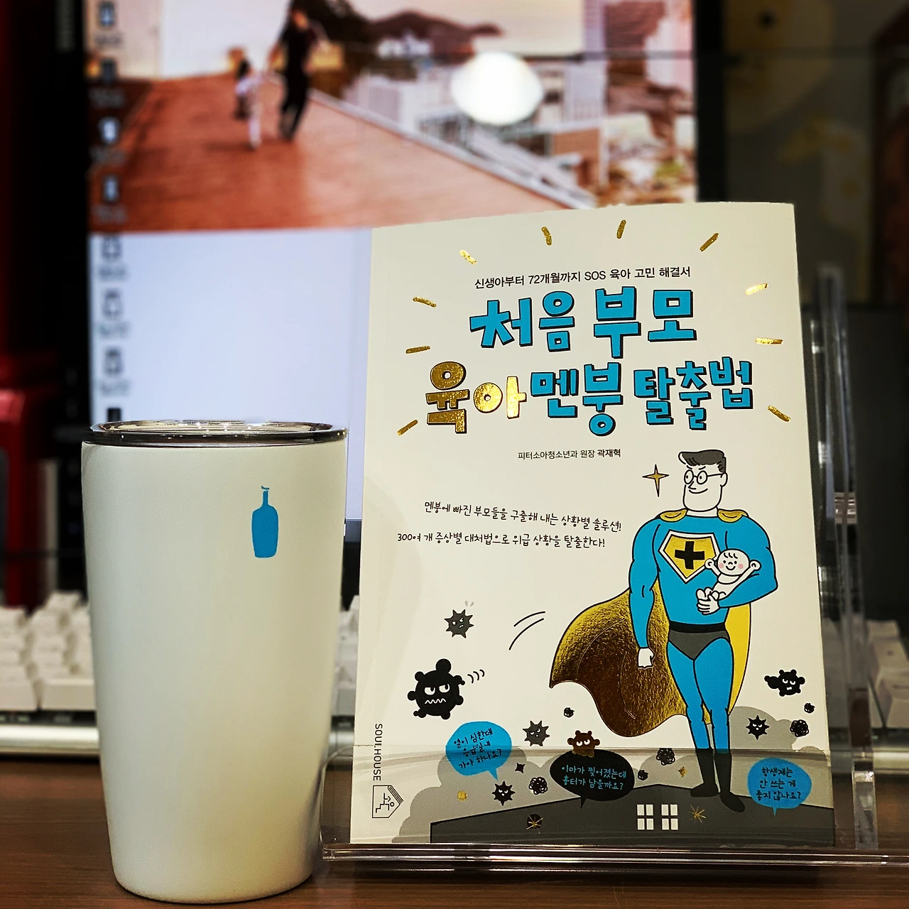 블루 보틀의 블루와 [처음 부모 육아 멘붕 탈출법] 커버의 블루