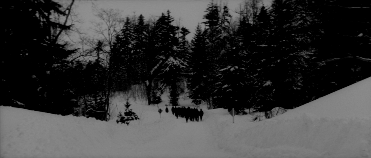 다치바나와 요다는 광막한 눈덮힌 설원 위로 도주를 계속한다. 간수들의 추격을 받으면서도 그들은 할 수 있는 한 몸을 피한다. 설원 한 쪽에 민가가 보인다. 추위와 굶주림에 시달리던 두 사람은 민가에 들어가 먹을 것을 찾는다. 그 곳은 쯔마기의 집이었다. 요다는 외출에서 돌아온 쯔마기의 아내가 놀라 소리를 지르자 때려서 그녀를 쓰러트린다. 그리고는 둘은 다시 도주를 시작한다. 아내가 탈옥수의 공격에 의해 부상을 당하였다는 소식을 들은 쯔마기는 분노한다.