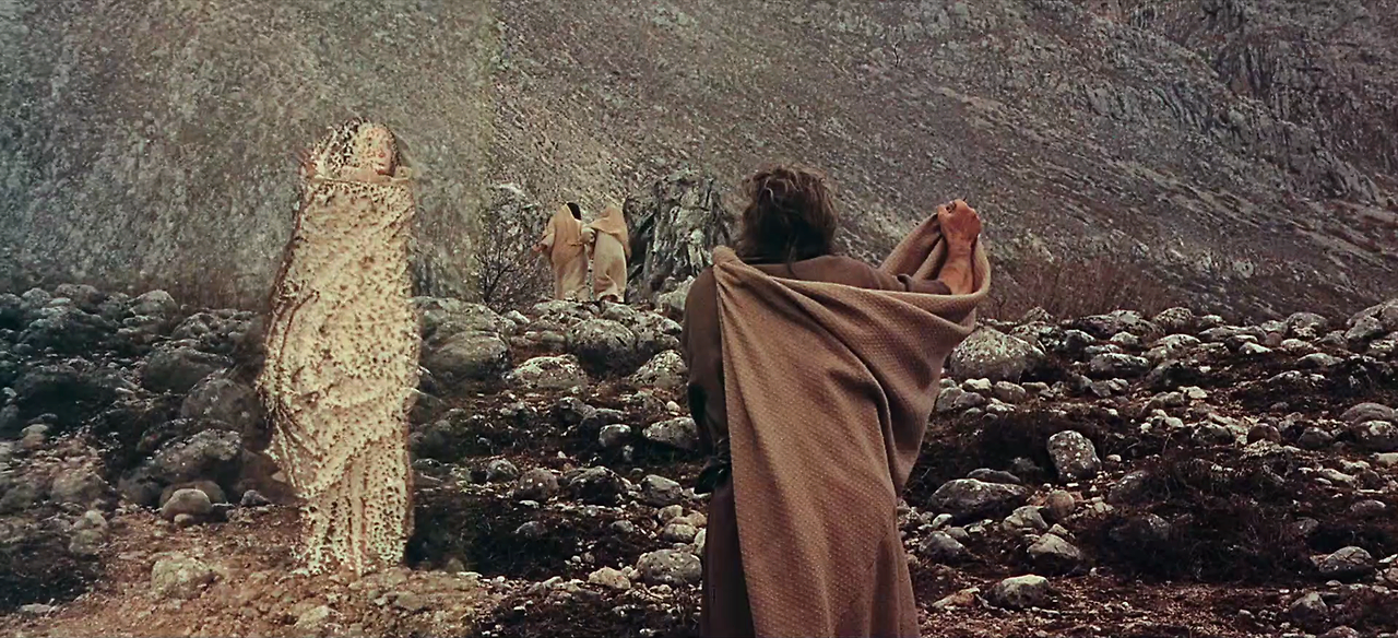 드디어 신이 인도하는 산에 도착한 아브라람은 이삭을 산제물로 바치려 하고, 그제야 이삭도 자신이 신에 바쳐지는 산제물이라는 사실을 알게 된다. 그렇지만 이삭은 스스로의 운명을 받아들이게 한다. 아브라함이 이삭을 장작 더미에 올려놓고 칼로 찌르려고 하자, 하늘에서 그것을 멈추라는 신의 목소리가 들려온다. 신은 아브라함이 얼마나 자신을 공경하는지 시험한 것이었다. 아브라함은 신이 내려준 새끼양을 대신 제물로 바친다. 신은 시련을 극복한 아브라함을 축복하여 “너의 자손을 하늘의 별처럼, 해변의 모래처럼 늘릴 것”이라고 말한다.