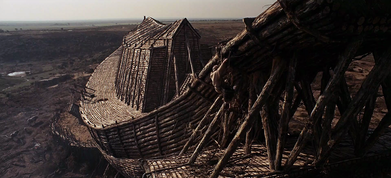 아담의 셋째 아들인 세스의 자손인 노아는 아내 및 세 아들 부부와 함께 신을 공경하며 살았다. 그러던 어느 날 노아는 신으로부터 모든 인간과 짐승을 멸하기 위하여 대홍수를 일으킬 것이니 방주를 만들어 가족과 함께 피신하라는 계시를 받는다. 노아와 아들들은 주위 사람들의 비웃음을 받으면서도 큰 방주를 만들고 그곳에 신의 지시대로 자신의 식구와 함께 모든 동물들을 한쌍씩 태운다. 그때부터 40일간에 걸쳐 큰 비가 내려 대홍수가 나서 노아 가족 외의 모든 사람들은 홍수에 휩쓸려 죽었다. 지상의 모든 동물이 사라져 버렸다. 드디어 비는 그치고 방주가 산기슭에 도착하자 노아는 비둘기를 날려 물이 빠졌다는 것을 확인한 후 동물들을 데리고 신천지에 내렸다.