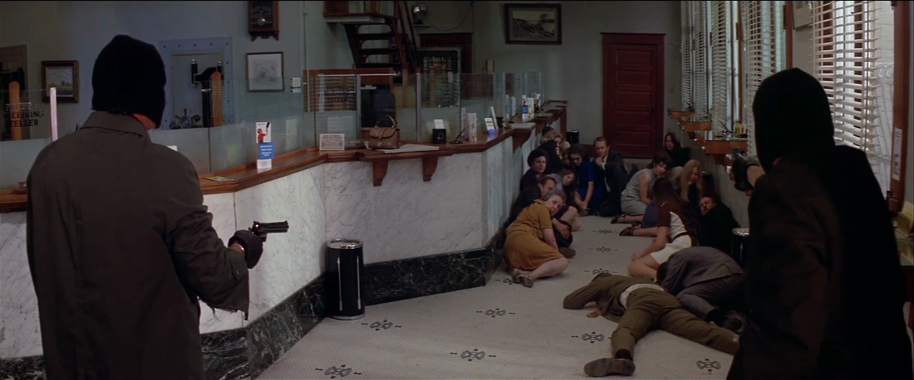 은행강도 결행의 날, 맥코이 부부와 루디, 잭슨의 4인은 캐럴이 운전하는 소형 트럭을 타고 은행 앞에 있는 맨홀의 위에 정차하여, 지하로 내려가 은행으로 연결되는 전선을 절단한다. 루디와 잭손이 권총을 가지고 직원들을 위협하는 가운데 맥코이가 금고에서 돈다발을 꺼내 가방에 쑤셔 넣는다. 은행강도가 무사히 성공하는 것처럼 보였지만, 그 순간 잭슨이 경비 한 사람을 총으로 사살해 버린다. 이때 맥코이가 장치해 둔 시한폭탄이 폭발하여 혼란이 발생한 틈에 맥코이 부부와 루디, 잭슨은 각각 도주한다. 그 도중에 루디는 걸거적 거리는 잭슨을 사살하고, 차에서 뛰어내려 만나기로 한 장소로 달려간다.