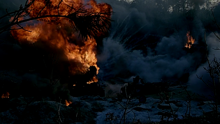 방법은 오직 단 하나, 오늘 밤에 독일군 탱크를 제거하는 것이다. 매닝은 분대원들을 모아 독일군 진지에 잠입하여 탱크를 파괴하려 출발한다. 매닝의 분대는 어둠을 뚫고 독일군 진지에 잠입하여 탱크를 폭파시킨다. 임무를 완수한 매닝의 분대는 후퇴하는데, 졸지에 습격을 받은 독일군들의 맹렬한 추격이 시작된다. 이 과장에서 매닝은 심각한 부상을 당하며, 살아남은 매닝의 부하 한 사람이 매닝을 업고 본부를 향해 돌아간다. 영화 시작 부분에서 매닝이 전우를 업고 가는 것과 똑같은 모습으로...