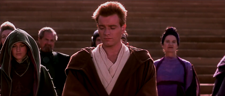 스타워즈의 초기 3부작(에피소드 4 – 6)에서는 루크 스카이워커가 주인공이다. 3부작 내내 이야기는 루크를 통해 전개된다. 스타워즈 2기 3부작인 에피소드 1 – 3은 루크 스카이워크와 레아 스카이워커의 아버지인 아나킨 스카이워커가 주인공이다. 그런데 에피소드 1에서는 아나킨이 아직 어린아이라서 그런지 주인공이라 하기에는 존재감이 약하다. 그렇지만 오비완이 아나킨에게 포스의 힘을 느끼거나, 어린 아나킨이 아미달라 여왕에게 사랑을 느끼는 장면이 앞으로의 이야기 전개에 암시를 주는 듯하다.