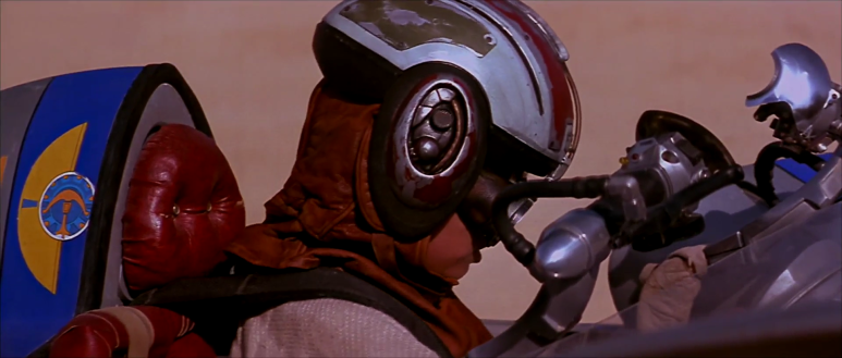 여기서 오비완은 노예 소년인 아나킨을 만난다. 아나킨은 어렸지만 전사가 될 재능을 가졌다. 오비완은 부품을 사기 위한 돈을 구하기 위해 아나킨을 포드 경기에 참가하도록 한다. 포드 경기는 작은 나는 기계를 타고 경주하는 게임인데, 경주 장면이 마치 영화 <벤허>의 전차 경주 장면을 연상시킨다. 아나킨은 상대방의 비겁한 행동에도 불구하고 경기에서 우승을 한다. 우승 상금으로 얻은 돈으로 오비완은 우주선 부품을 사고, 아나킨을 노예에서 해방시킨다. 오비완은 아나킨으로부터 포스의 힘을 느껴 그를 제다이의 기사로 키울 생각으로 그를 데려가려 한다. 이때 오비완 일행을 추격해 온 무역연합 군대의 공격이 시작된다.