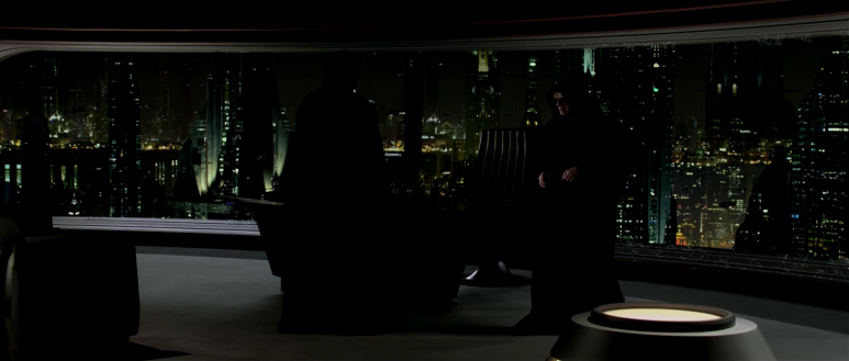 전쟁이 점점 길어져가자 군 통수권자라 할 수 있는 팰퍼틴 의장의 권력이 점차 강대해져 간다. 제다이 기사들은 팰퍼틴 의장에게 독재자의 모습을 발견하게 되고, 팰퍼틴의 권력을 견제하기 위하여 아나킨에게 그를 감시하라는 임무를 맡긴다. 팰퍼핀을 감시하는 임무를 맡은 아나킨은 임무보다는 아미달라 여왕의 목숨에 온 정신이 쏠려있다. 그런 아나킨에게 팰퍼틴이 은근한 유혹의 손길을 보낸다. 아미달라 여왕을 죽음으로부터 지킬 수 있는 비결이 있다고. 아나킨은 사랑하는 사람의 죽음을 막기 위해 점차 팰퍼틴에게 마음을 빼앗긴다. 팰퍼틴은 아나킨에게 어두운 포스의 힘을 깨우치라고 한다. 아나킨은 팰퍼틴이 시스의 군주라는 사실을 알게 된다.