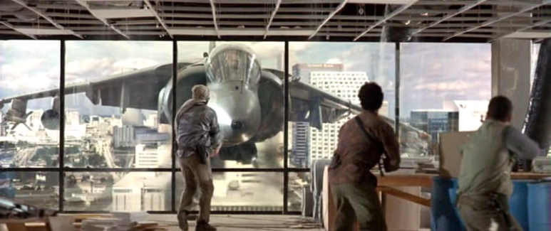 테러단의 두목 아지즈는 해리의 딸 데이너를 납치한다. 그리고 아지즈는 빌딩을 점거한 후 중동에서 미군 철수를 요구하며 거절할 경우 핵미사일로 뉴욕을 폭파하겠다고 협박한다. 미군과 테러 진압반이 출동하지만 핵 미사일과 데이너를 인질로 잡고 있는 아지즈에게 속수무책이다. 이때 해리는 수식이착륙 전투기를 타고 아지즈가 점거한 빌딩으로 쳐들어간다. 전투가가 마치 헬리콥터처럼 공중에 정지한 상태로서 테러 조직원들을 처치한다.