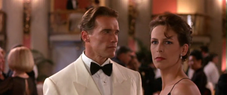 해리 태스커(아널드 슈워제너거 분)는 특급 스파이이다. 눈으로 덮인 스위스의 어느 고성에서 화려한 파티가 벌어지고 있을 즈음 해리는 성 안의 컴퓨터에 저장된 극비 데이터를 가져오기 위하여 성 안으로 잠입한다. 데이터 파일을 내려받은 후 탈출을 위해 파티장으로 들어선다. 이때 경비병들이 소란스러워진다. 데이터 파일이 도난당한 사실이 들켜버린 것이다. 위기의 순간 해리는 우연히 눈이 마주친 미모의 여성과 탱고를 추면서 경비병의 눈을 속이고 성을 빠져나온다. 그녀는 고대 페르시아 유물들을 거래하는 고미술상이다. 성을 빠져나온 해리를 경비병들이 맹추격한다. 눈 덮인 알프스에서 벌어지는 추격전이 볼만하다. 치열한 추격전 끝에 해리는 경비병들을 따돌리고 무사히 미국으로 귀국한다.
