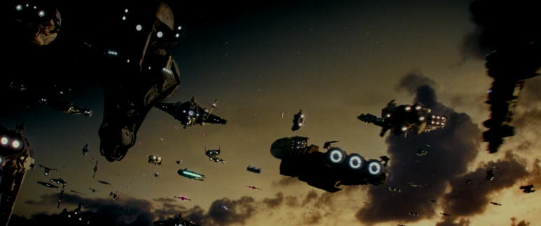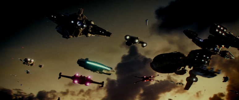 펠퍼틴은 가공할 포스를 가지고 있다. 레이는 펠퍼틴과 맞서 싸우지만 상대가 되지 않을 정도이다. 한편 저항군은 퍼스트 오더의 군대에 대대적인 공격에 나섰지만 퍼스트 오더의 군사력은 저항군이 생각하였던 것보다 훨씬 강하다. 압도적인 숫자로 반격해 오자 저항군의 패색이 짙어진다. 저항군의 최후가 다가왔다고 생각하는 순간, 기적이 일어난다. 전 은하계에 있던 민간인들이 저항군을 지원하기 위해 총출동한 것이다. 하늘을 가득 덮은 민간 항공기들이 퍼스트 오더의 군대를 공격한다. 우주판 피플스 파워라 하여야 할 것이다.