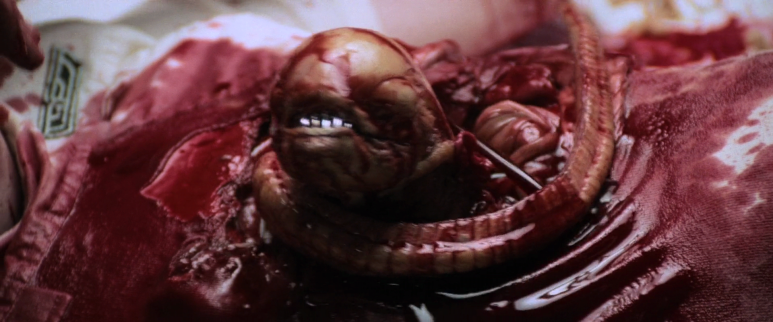 의료진이 우주선으로 옮겨진 대원의 얼굴에서 생물을 떼내려 하지만 괴생물체의 피는 지독한 산성이라 금속까지를 녹여 대원들은 모두 당황한다. 하지만 어느 순간 괴생물체는 저절로 애쉬의 얼굴에서 떨어져 나가고, 애쉬는 건강을 되찾는 듯 보였다. 그러다가 갑자기 애쉬의 배와 가슴이 울룩불룩해지더니 가슴을 찢고 또 다른 모습의 괴생물체가 나온다. 이 괴생물체는 애쉬의 몸을 숙주 삼아 변태를 한 것이다.