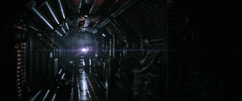 전파가 발신되고 있던 곳은 거대한 우주선이었다. 아니 우주선인지 행성 이주자들이 거주하던 우주 기지였는지 분명하지는 않다. 우주선은 이미 오래전에 파괴된 것으로 보였으며, 여기에 탑승했던 승무원들은 모두 죽어 미이라로 변해 있었다. 조사반이 더 안 쪽으로 들어가 이상한 모양의 생울이 진열되어 있는 실험실을 발견한다. 알코올에 담긴 생물들은 작은 것은 몇십 센티에서 큰 것은 1미터가 넘어 보이는 것들도 있다. 이들이 좀 더 조사를 하자 식물 모습을 한 산란체를 발견하는데, 그것을 조사하는 순간 그 속에서 나온 작은 괴생물체는 한 대원의 우주복 핼맷 속으로 침투하여 얼굴에 달라붙는다. 주위에서 달려들어 아무리 생물을 떼내려 해도 떨어지지 않는다.