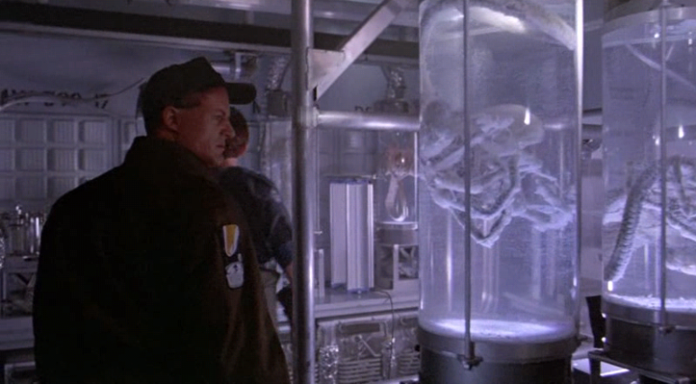 수색선을 보낸 회사는 해병과 직원으로 구성된 조사단을 보낸 것은 행성에 거주하는 주민을 염려해서가 아니라 에일리언의 샘플을 구하기 위해서이다. 막강의 생명력과 살상력을 가진 에일리언은 생물병기로서 매우 유용하다고 생각한 회사가 직원에게 밀명을 내려 에일리언을 산채로 지구로 데려오도록 지시한 것이다. 이러한 회사의 음모는 결국 리플리에게 들통이 나며, 회사의 밀명을 받은 회사 직원은 조사단을 희생시키고 에일리언의 샘플을 가져가려 하다가 리플리와 충돌한 후 오히려 에일리언에게 죽는다.