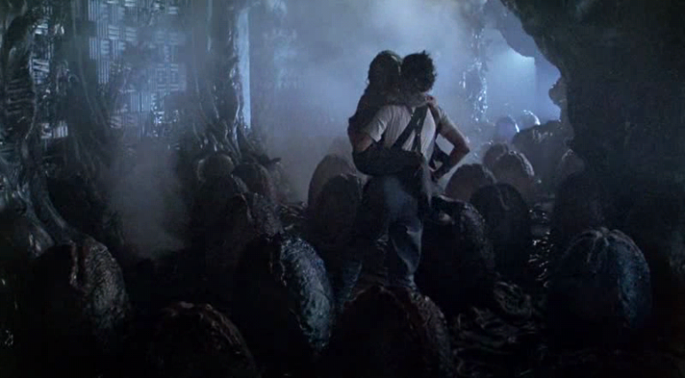이렇게 기지 안을 헤매던 리플리는 우연히 에일리언의 산란장을 발견한다. 에일리언은 개미나 벌과 같은 곤충처럼 거대한 여왕 에일리언이 알을 낳아 번식한다. 리플리의 눈앞에는 수많은 에일리언의 알과 알을 낳고 있는 거대한 여왕 에일리언을 발견한다. 화염방사기를 가져온 리플리는 에일리언의 알들을 모두 불태워 없애버린다. 에일리언으로 봐서는 리플리는 자신들의 소중한 자손을 말살한 철천지의 원수이다. 에일리언들도 이제 리플리와 해병들을 죽이기 위해 총공격을 한다.