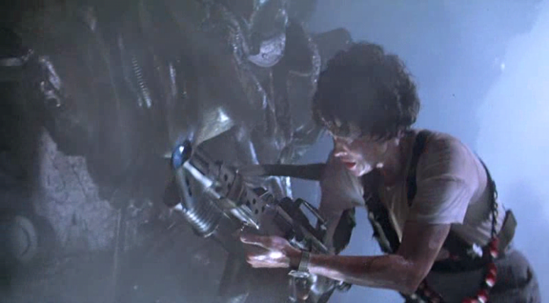 리플리는 로봇형 작업기계에 타고 에일리언과 정면 대결한다. 로봇형 작업기계의 위력은 막강하다. 파워에서는 에일리언보다 더 강하다. 그러나 아무래도 기계인 만큼 움직임은 둔할 수밖에 없다. 에일리언과 대결에 나선 리플리는 고전 끝에 에일리언과 싸워 이겨 에일리언을 우주선 밖으로 내던져 버린다.