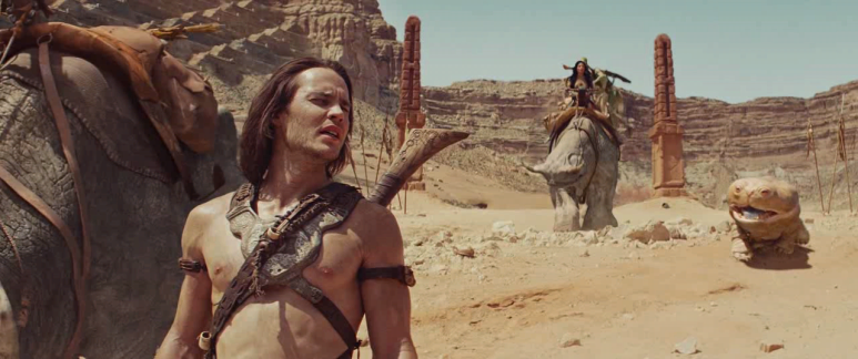 모험가인 존 카터는 남북 전쟁 때 징집을 거부한 탓으로 정부 관리들에게 쫓기고 있다. 그렇다고 우연히 이 동굴로 피신해 들어오게 되고, 동굴에서 황금을 발견한다. 이때 정체불명의 인물이 나타나고, 존은 정신을 잃는다. 정신을 차려보니 그는 어느 황량한 벌판에 누워있다. 그는 일어나 어딘지를 확인하려 주위를 살펴본다. 그러던 중 우연히 점프를 하니 하늘로 까맣게 날아오른다. 수백 미터 이상의 높이로 점프가 가능하게 된 것이다. 존은 무슨 영문인지 몰라 어리둥절하다.