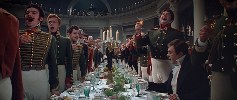 전쟁과 평화는 러시아 귀족들의 이야기이다. 이 영화에서 등장하는 주인공 안드레이와 니콜라이는 러시아 왕실과도 가까운 귀족집안이며, 나타샤 역시 마찬가지이다. 러시아 민중들의 이야기는 거의 등장하지 않는다. 전쟁의 폐허 속에서 난민이 된 이들의 얼굴이 엑스트러로서 간간이 비칠 뿐이다. 이 영화는 처음부터 귀족들의 화려한 파티로부터 시작된다. 나는 영화를 통해 서구 귀족들의 화려한 파티를 많이 봤지만 이 영화에서 만큼의 화려한 파티를 거의 볼 수 없었다. 정말 사치의 극을 달하는 화려한 파티들이다. 왕실, 귀족, 그리고 그들의 화려한 파티는 공산주의의 이념과는 완전히 배치되는 것이라 할 수 있다. 지금까지 소련에 대해 가졌던 내 상식이 조금 흔들리는 느낌이다.