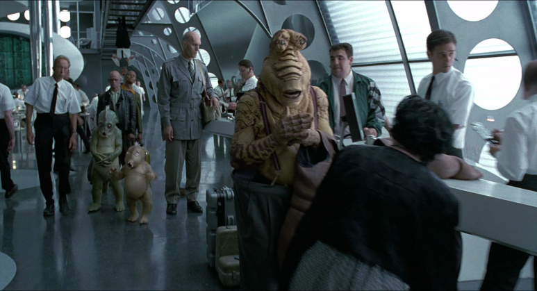 이 영화는 스토리야 어떻게 되든 좋다. 지구인 속에서 숨어 살아가는 외계인이라는 새로운 발상과 다양한 모습의 외계인, 그리고 우리의 상식을 찌르는 여러 가지 우주상을 보여줌으로써 팬들을 즐겁게 한다. 우리가 아는 가장 기본적인 물질은 원자이며, 가장 큰 세계는 우주이다. 그런데 이 원자와 우주가 비슷한 점이 있다. 원자는 원자핵을 중심으로 전자가 돌고 있으며, 우주에서는 항성의 주위를 행성이 돌고 있다. 이런 유사점에 착안한 것인지, 이 영화에서는 갖가지 모습의 우주가 나온다.