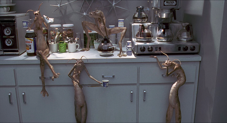 사람 손바닥만 한 은하계가 하늘에 떠있어 그것을 사람이 손으로 집어든다. 그리고 사물함은 하나의 세계가 되어 작은 사물함 속에 수많은 외계인들이 자신들의 세계를 이루고 살고 있는 모습도 보여준다. 그리고 영화의 마지막에는 크고 작은 은하계가 겹쳐진 모습을 보여주면서, 우리가 살고 있는 이 세계도 아주 거대한 세상의 한 작은 부분일 수도 있다는 것을 암시하기도 한다. 그리고 이 영화에서는 재미있게 생긴 많은 외계인들이 등장한다.