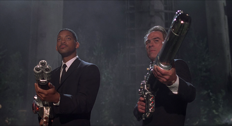 영화 <맨 인 블랙>(Men in Black)은 상당히 독특한 SF영화다. 보통 우주나 외계인을 소재로 한 영화에서는 우주에서 외계 생물과 전쟁을 벌이거나 지구를 침공한 외계인을 상대로 인류를 지키는 모습을 보여준다. 그러나 <멘 인 블랙>에서는 지구인들과 함께 살아가면서 말썽을 일으키려는 외계인들을 감시하고, 외계인의 사고를 방지하려는 조직의 요원들의 활약을 그리고 있다. 이 영화는 이미 지구에는 많은 외계인들이 이주하여 살고 있으며, 이들은 지구인으로 분장하여 각계에서 활약하고 있다는 재미난 설정으로부터 이야기를 시작하고 있다. 이 영화에 따르면 엘비스 프레스리도 실은 외계인이라는 것이다. 이 영화는 1997년 미국에서 제작되었다.