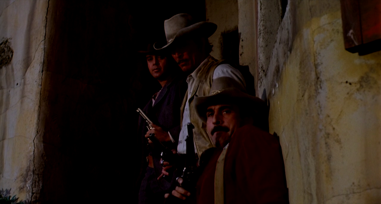 상황을 파악하고 마을로 찾아가는 크리스의 눈앞에 펼쳐진 광경은 모두 살해당한 남자들의 사체였다. 여자들만 남게 된 마을을 걱정하여 크리스는 마을을 향해 달려갔지만, 이미 마을은 토로 일당으로부터 습격을 받아 여자들은 모두 능욕당한 후 교회에 갇혀 있다. 마을의 여자들과 아이들을 구해주겠다고 약속한 크리스는 옛날 자신이 체포하여 투손 형무소에 처넣은 무법자들에게 토로일당과 싸운다면 자유를 주겠다고 제안한다.