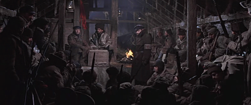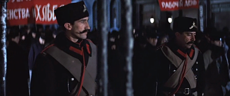 크고 넓은 연회장에서 파티가 한창 무르익어 가고 있을 무렵, 밖에서는 볼셰비키주의자들에 의한 데모가 벌어지고 있었다. 데모대 속에는 라라의 연인 파샤도 있었다. 헌병대가 출동하여 데모대를 향하여 총탄을 발사하기 시작하자 데모대는 많은 사상자를 남기고 후퇴하였다. 집의 발코니에서 이 광경을 내려다보는 유리는 부상자를 치료하기 위해 내려가지만, 헌병들이 쫓아내는 바람에 어쩔 수 없이 그냥 돌아온다. 다음날 유리의 약혼녀인 토냐가 프랑스로부터 귀국하여 유리와 반갑게 재회한다. 한편 파샤는 얼굴에 화상을 입은 채 라라의 집으로 찾아온다. 그는 헌병들로부터 쫓기고 있다면서 권총을 라라에게 맡긴다. 그날 밤 라라는 코마로프스키에게 강간을 당한다.