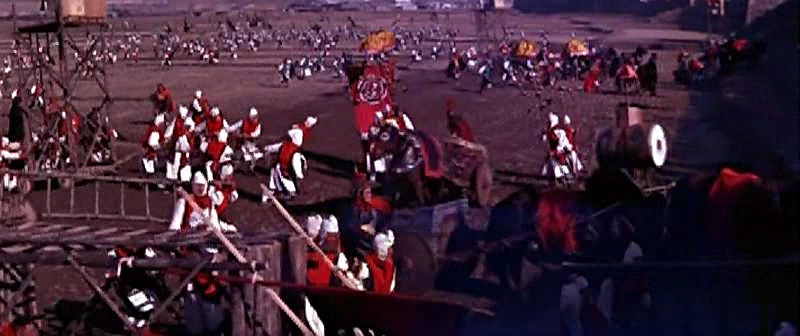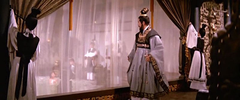 상나라의 주왕은 군사들을 동원하여 주위의 국가들을 모두 발아래에 복속시킨다. 수많은 군대와 전차가 등장하는 전투 신은 60년이나 지난 그 시대에 어떻게 저런 웅장한 스케일의 전쟁신을 촬영할 수 있었나 하는 감탄마저 든다. 주왕의 전쟁에 이기고 돌아오자 수많은 공물들이 주왕에게 바쳐진다. 그런데 어느 한 지역에서 보낸 공물이 영 시원찮다. 그것을 보고 주왕이 기분이 언짢아하고 있다.