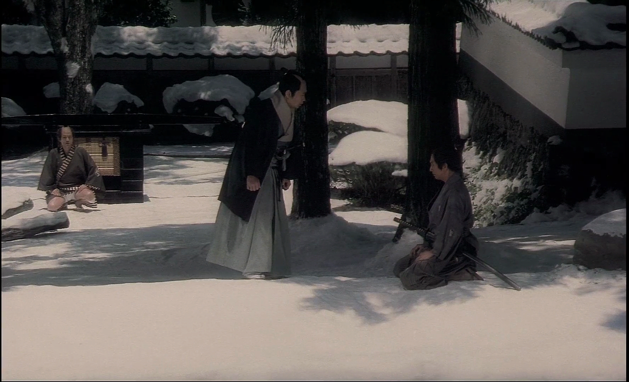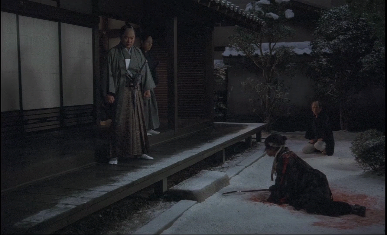 오노는 결국 칸이치로에게 무사답게 절복(切腹)을 하여 스스로 죽으라고 명한다. 칸이치로가 무사로서의 명예도 지키고 또 모리오카 번이 살아남기 위해서는 그 길밖에 없다고 설득한다. 칸이치로로서는 가족이 애타게 그리운 그에게 스스로 자결하라는 친구의 말이 섭섭하지만, 결국 그 길밖에 없다는 것을 알고, 스스로 목숨을 거둔다.