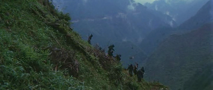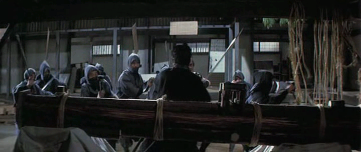 사이키번의 고위관리인 호시노 슈리(星野修理)는 이들 카게에 대항하기 위해 카게가리 3인조 무로토 쥬베에, 닛코(日光), 겟꼬(月光)를 고용하였다. 새로운 대포의 완성은 3일 남았다. 호시노는 그 200 관도 넘는 대포를 영지 안에 있는 가타무키 산(傾山)으로 운반하려고 한다. 세 사람은 대포 제조 장인인 시바쯔지 도사이(芝辻道斉)의 오두막에서 숙식을 하며 작전을 세운다. 그런데 세 사람이 각각 미리 지형을 조사하로 오두막을 비운 사이에 카게 일당들이 오두막을 습격하여 도사이를 비롯한 경비 역할을 맡은 사무라이들을 모두 죽여버리고 만다.