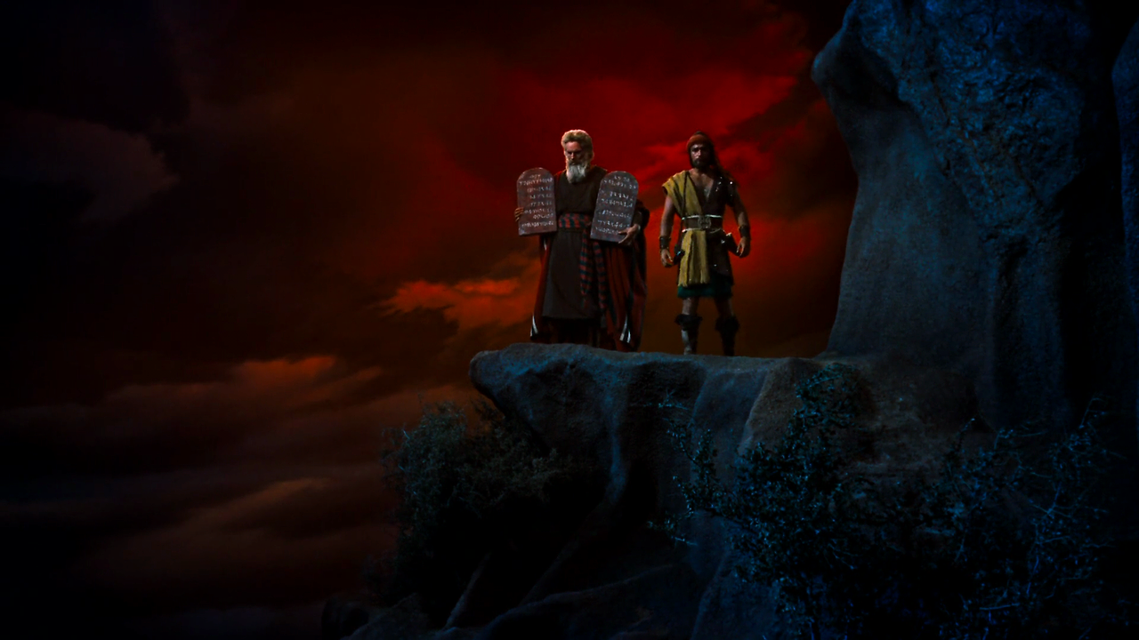 그런 후 모세는 시나이 산 근처로 와서는 히브리 백성들을 남겨둔 채 40일 동안 시나이 산에 들어가 신에게 기도를 한다. 기도가 끝나자 한 줄기 빛이 비치어 바위에 사람이 해서는 안될 10가지의 계율을 새긴다. 그리고 모세는 신으로부터 그 10계를 받아 산을 내려온다. 그런데 모세가 산에 들어간 사이 히브리 인들은 신에 대한 믿음을 저버리고 황금 송아지 우상을 만들어 우상숭배를 하면서 향락에 빠져있다. 산에서 내려와 그 모습을 본 모세는 “신의 분노를 알라”라고 하면서 십계가 새겨진 석판을 황금 송아지에게 던지자, 땅이 갈라지고 불길이 타올라 죄 많은 사람들은 차례차례 그 속으로 떨어졌다.
