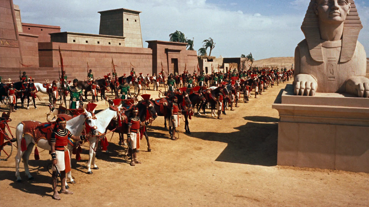 세월이 흘러 파라오가 죽고 그 뒤를 이어 비티아의 오빠 세티가 이집트 왕이 된다. 세티는 람세스(율 브린너 분)라는 친아들이 있지만, 조카인 모세(찰톤 헤스톤 분)를 자식 이상으로 사랑한다. 모세는 유능한 장군으로서 전쟁에서도 눈부신 활약을 보였을 뿐만 아니라 도시 건설에도 뛰어난 역량을 보인다. 왕인 세티는 람세스에게는 도시 건설을, 그리고 모세에게는 군사를 이끌고 전쟁에 참가하도록 명한다. 그런데 모세는 혁혁한 공을 세워 전쟁에서 승리하고 개선하였지만, 람세스가 맡은 도시 건설은 지지부진하다. 람세스는 히브리인 노예들을 너무 가혹하게 대했으므로 그로 인해 능률이 오르지 않는 것이다.