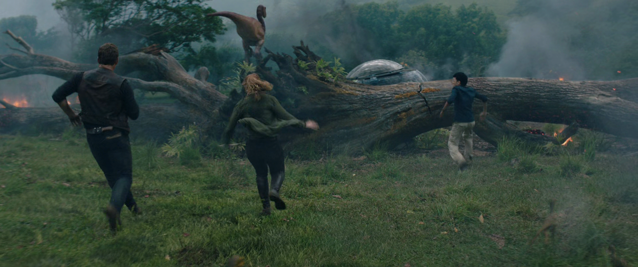 탈출 직후 오웬이 용암에 쫓기는 공룡들과 함께 달려와 클레어와 프랭클린도 이에 합류하여 함께 도망친다. 통나무 뒤에 숨자 그곳에 버려진 자이로스피어를 발견한다. 클레어와 프랭클린이 자이로스피어에 들어간 순간 공룡의 공격을 받아 스피어의 문이 닫혀버리고 말아, 두 사람은 경사면을 굴러가고, 오웬을 달려서 뒤쫓아오는 용암과 돌더미들로부터 겨우 벗어난다. 쟈이로스피어는 바다에 떨어져, 클레어는 익사 위기에 처하지만, 겨우 오웬이 구출해 낸다.