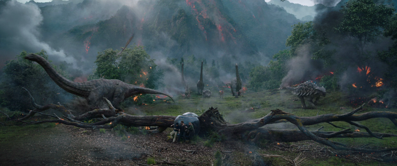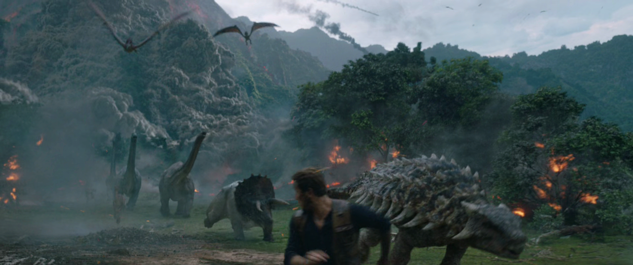 화산 폭발로 멸망하는 공룡의 천국과 공룡을 병기로 악용하려는 인간의 탐욕