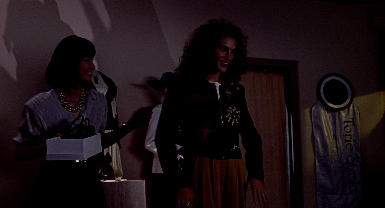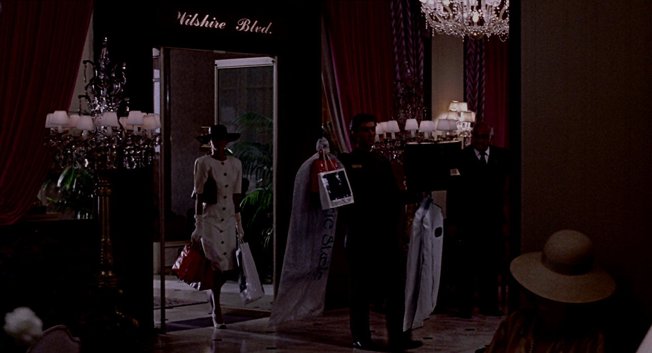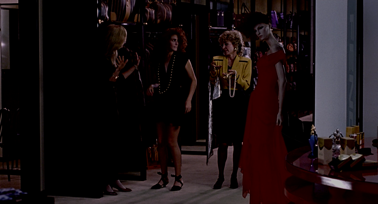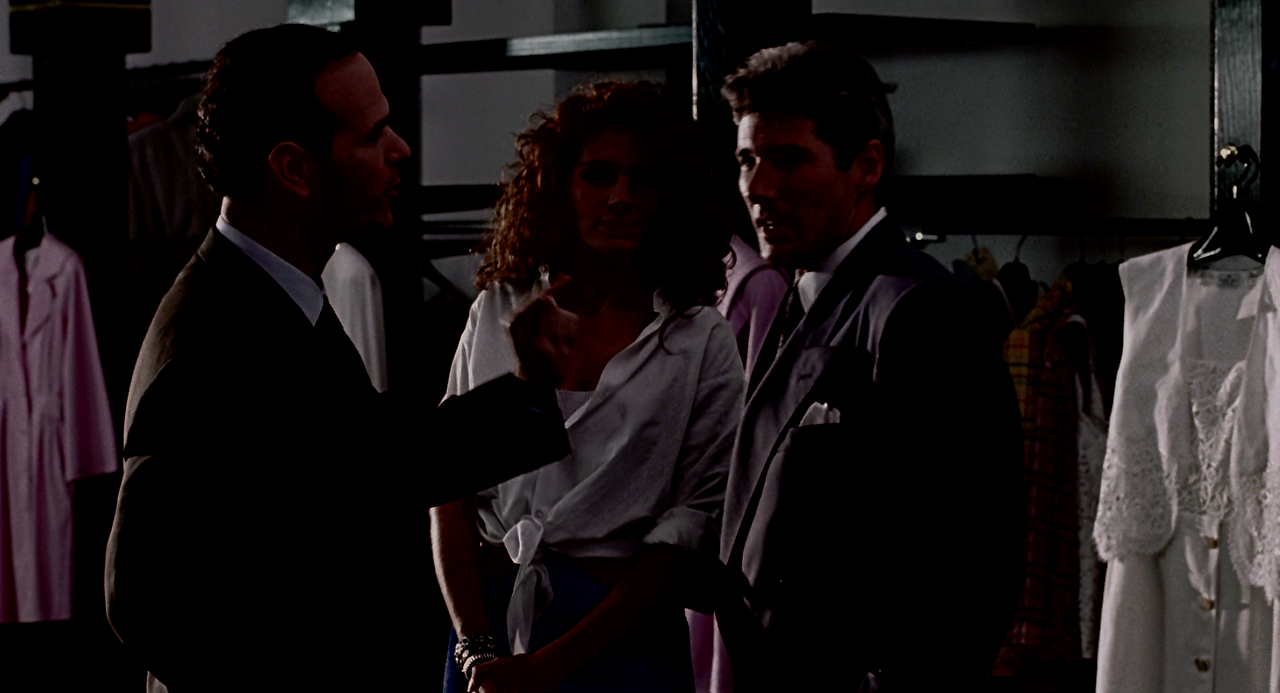 비비안은 에드워드로부터 받은 돈으로 회식 때 입고 갈 드레스를 사러 가지만, 고급 부티크점에서는 그녀의 야하고 천박한 옷차림을 보고는 거리의 여자라는 것을 알아차리고 가게에 들어오지 못하게 한다. 비비안은 자신을 무시하여 상대하지 않으려는 그들에게 분함과 함께 자신의 처지에 대한 서러움을 느낀다. 비비안으로부터 이 말을 들은 에드워드는 비비안을 데리고 다시 그 집으로 데려가 큰돈을 뿌리며 값비싼 옷을 사면서 직원들에게 비비안에게 아부하라고 시킨다. 그 말을 들은 부티크 직원들은 앞다투어 비비안의 아름다움을 찬양한다. 에드워드와 비비안은 값비싼 옷을 잔뜩 사들고 호텔로 돌아온다.