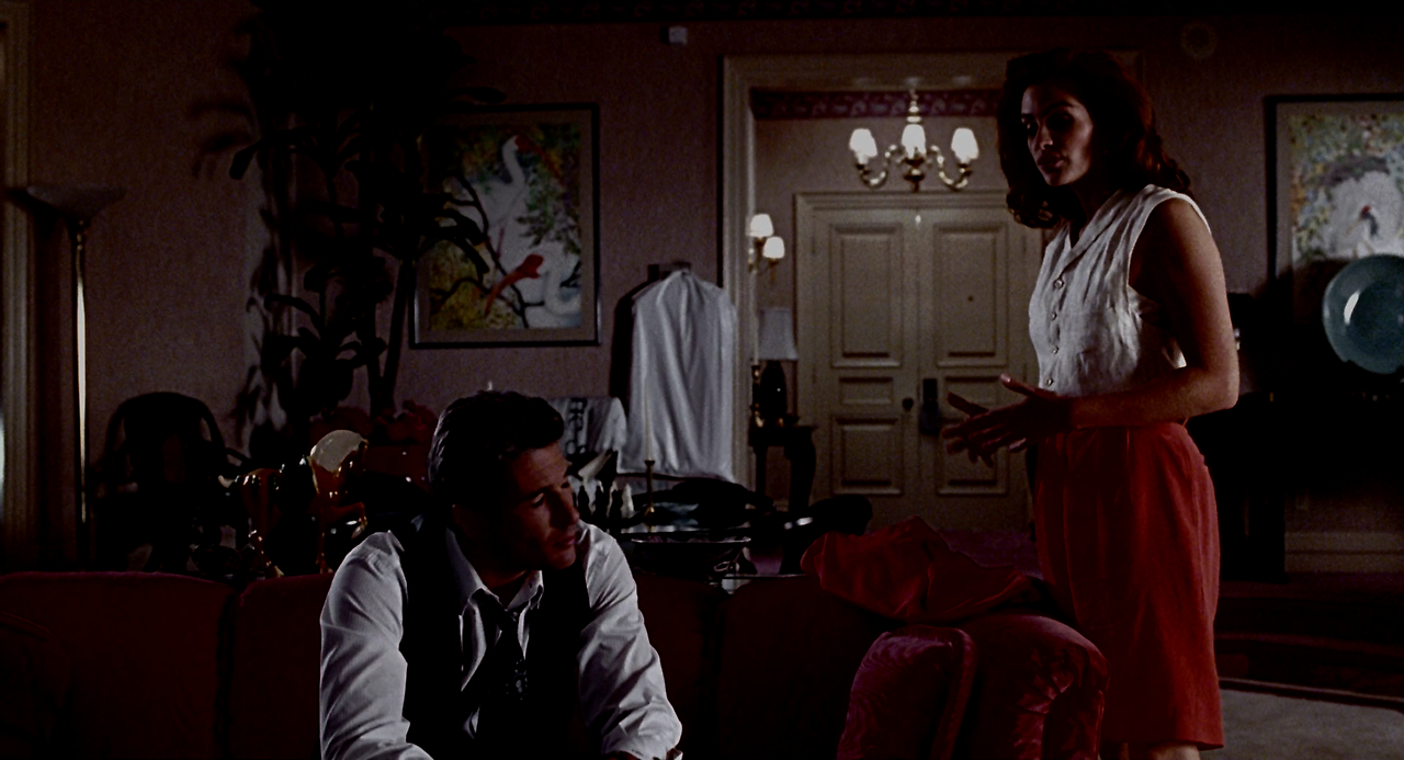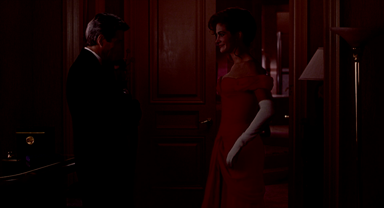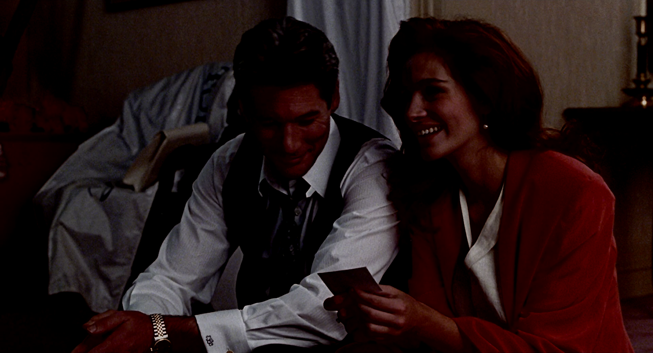 호텔 펜트하우스에서 샴팬과 딸기를 대접하는 에드워드에게 비비안은 연출도 좋지만 얼른 본론으로 들어가자고 말한다. 에드워드는 비비안과 네고를 한 끝에 하룻밤에 300달러를 주기로 하고 밤을 보낸다.